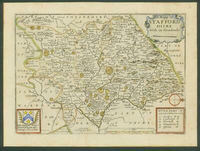 1671- Original antique map titled: 'A Mapp of STAFFORDSHIRE with its Hundreds'