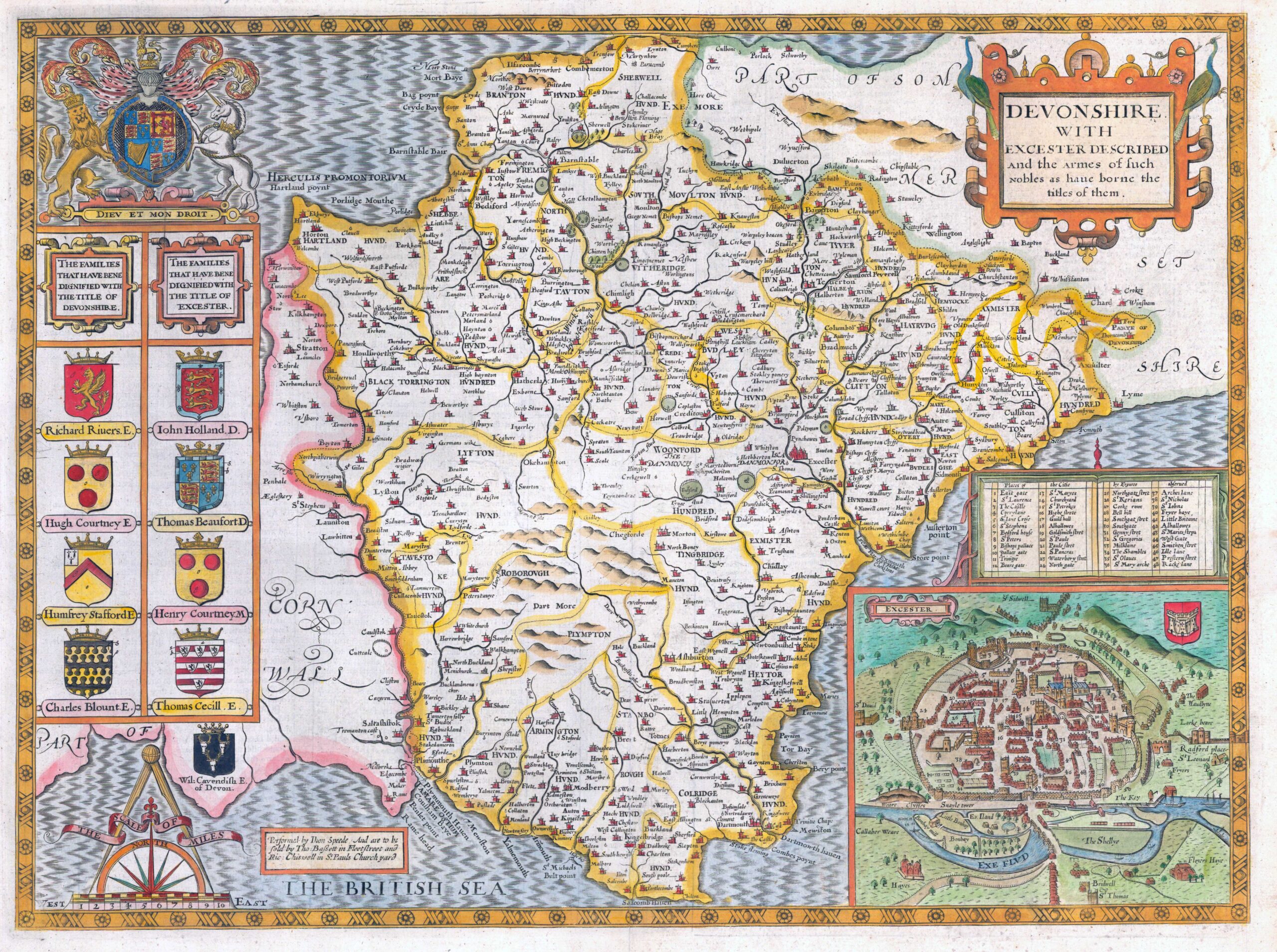 1676 "DEVONSHIRE WITH EXCESTER DESCRIBED and the Armes of such Nobiles and haue borne the titles of them".