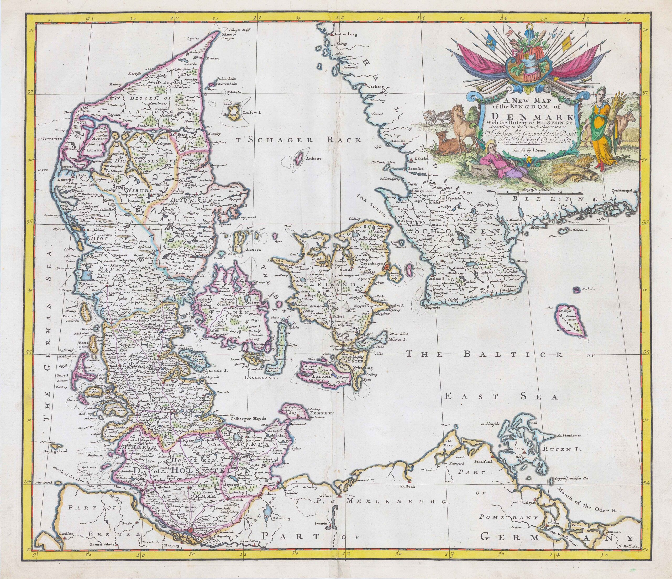 1719 - "A NEW MAP OF THE KINGDOM OF DENMARK With the Dutchy of HOLSTEIN According to the newest observations" by John Senex.