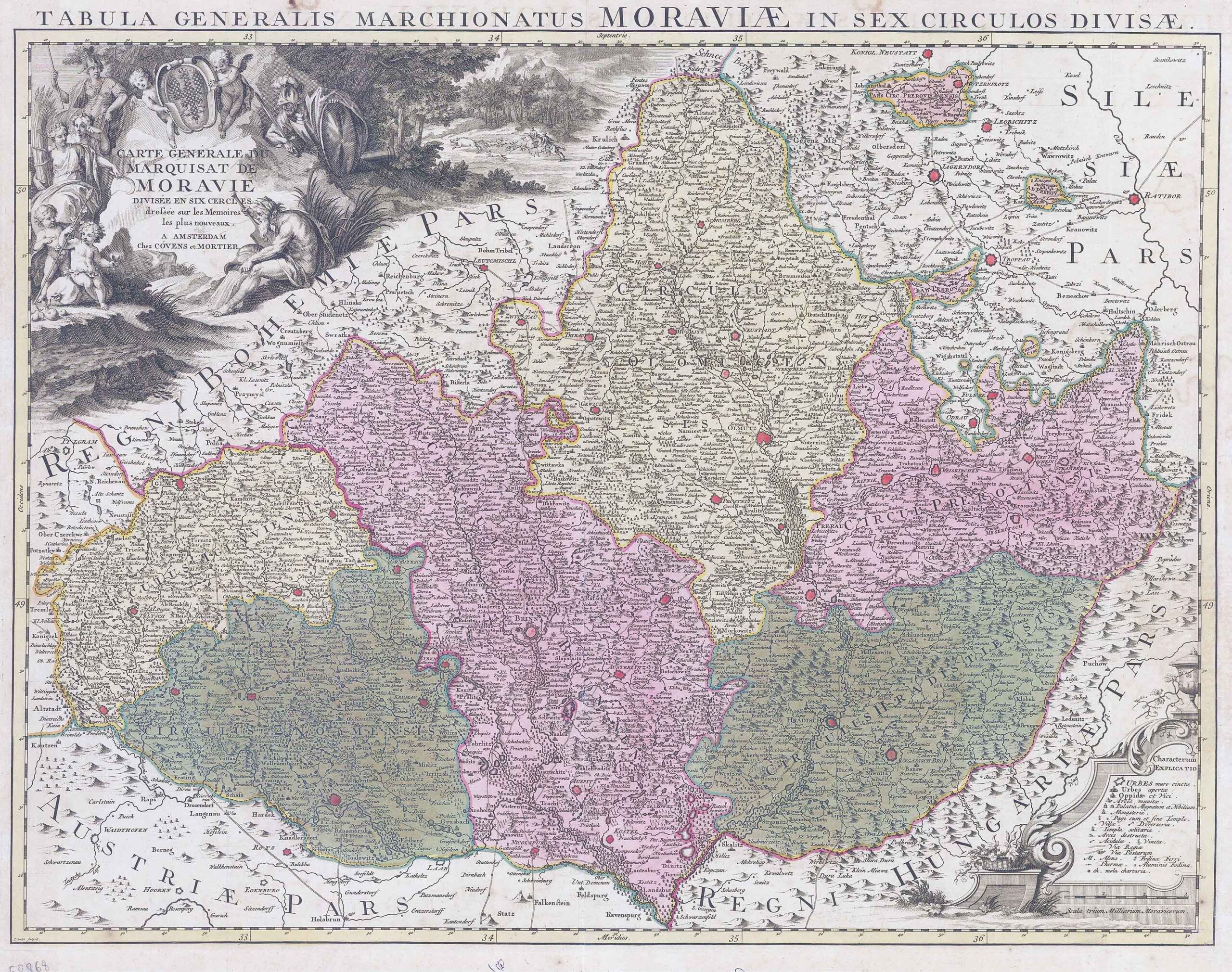 1740 "Carte Generale du Marquisant de Moravie divisee en six Cercles dressee sur les Memories les plus nouveaux. A Amster Chez Covens et Mortier".