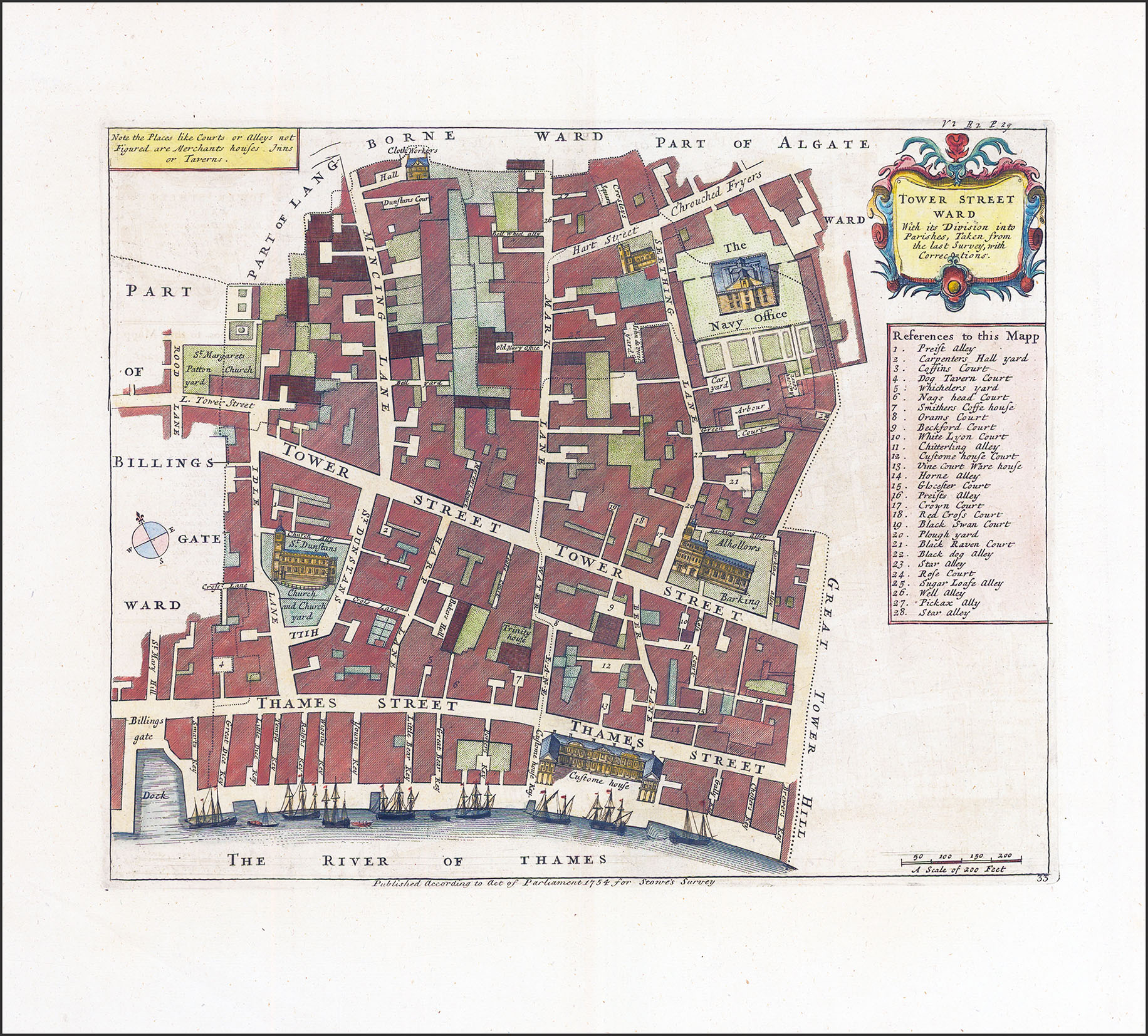 1755 "TOWER STREET WARD WITH ITS DIVISION INTO PARISHES TAKEN FROM THE LAST SURVEY WITH CORRECTIONS"