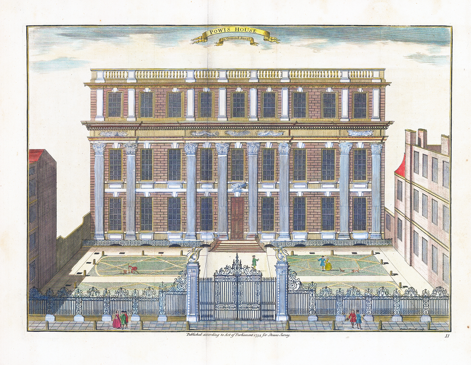 1755 Engraved print London POWIS HOUSE IN ORMOND STREET by Stow (ST36)