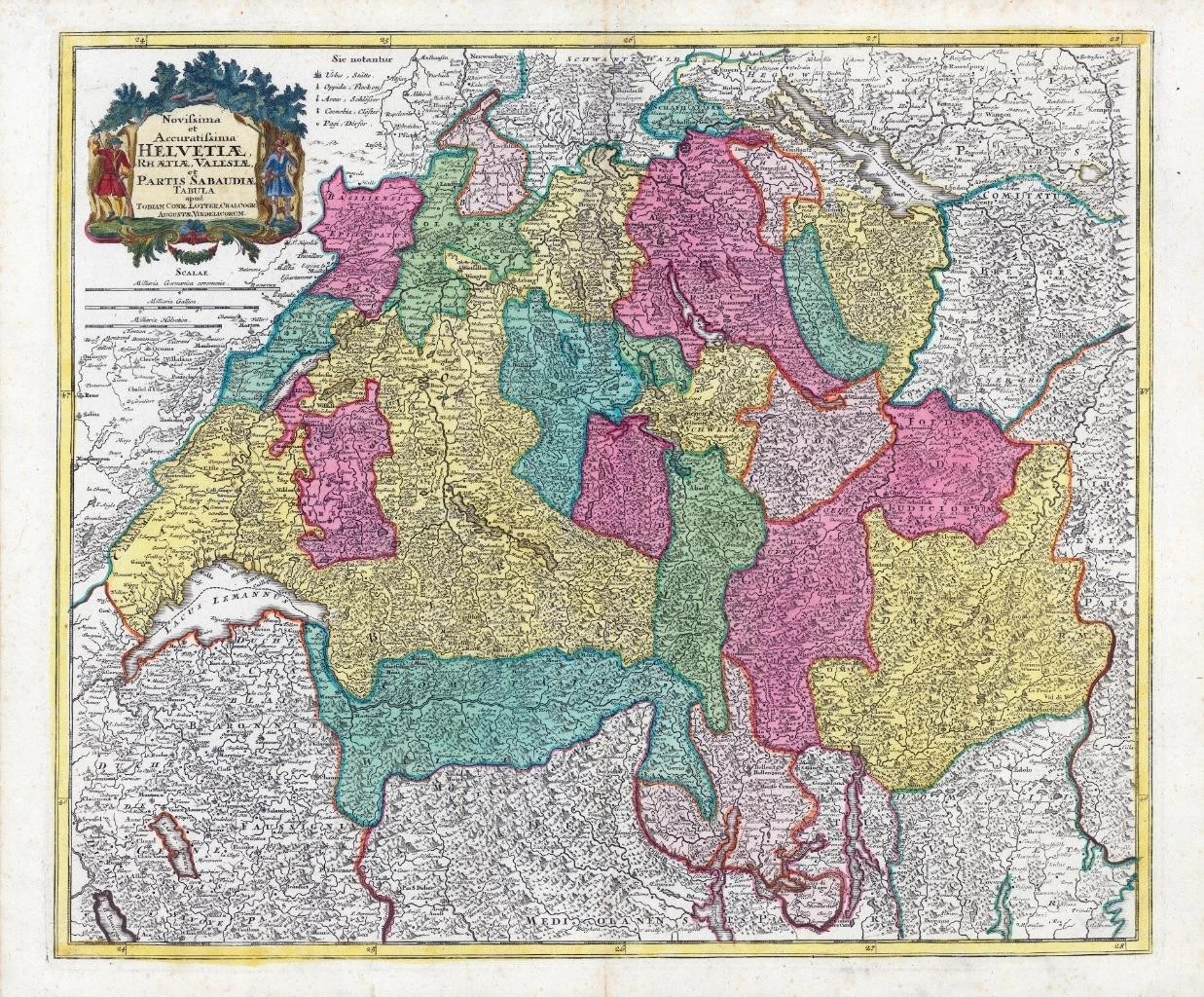 1757 Map Switzerland HELVETIAE RHAETIAE VALESIAE SABAUDIAE Lotter (HM52)