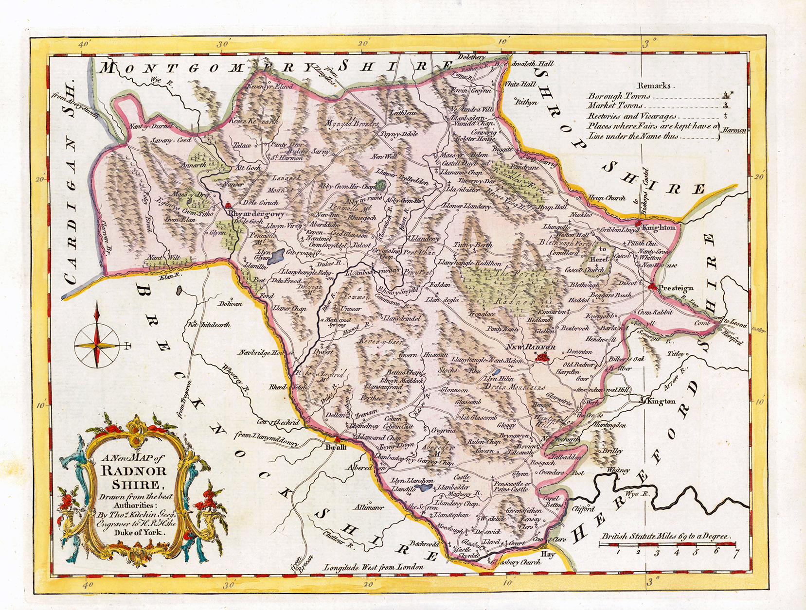 1764 - Original Antique Map by Thomas Kitchin titled "A NEW MAP OF RADNORSHIRE"