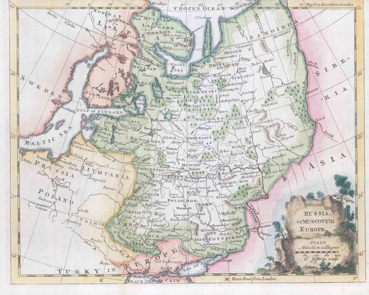 1770 - A fine antique map by Thomas Jefferys titled: "Russia or Muscovy in Europe"