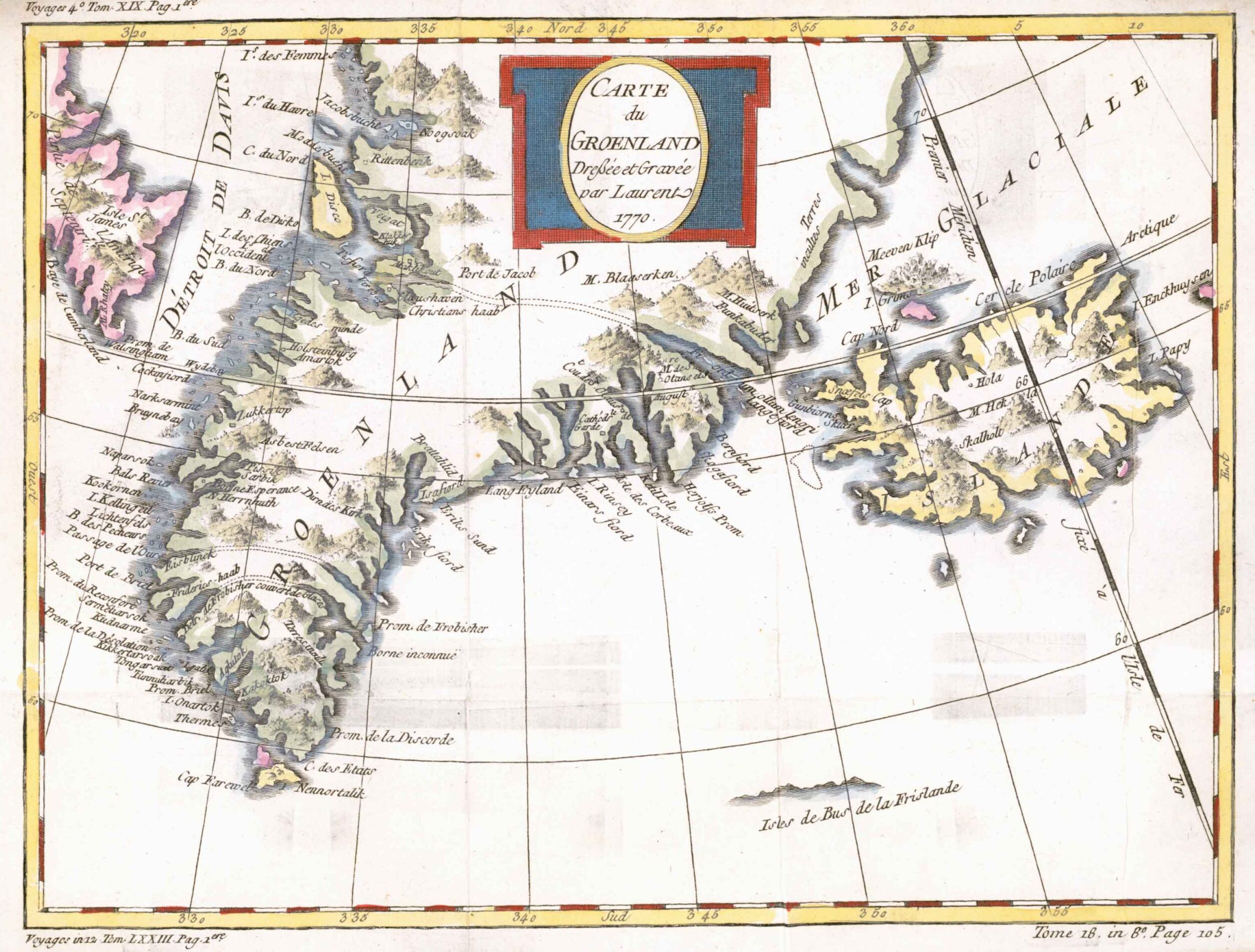 1770 Map CARTE DU GROENLAND DRESSEE ET GRAVEE PAR LAURENT Greenland (BM3-1)