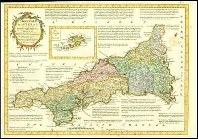 1777 - Original Antique map titled:' CORNWALL Divided into Hundreds '