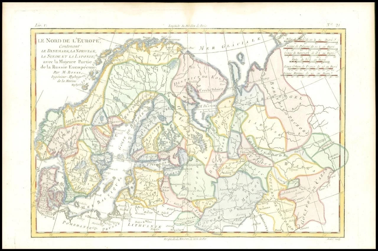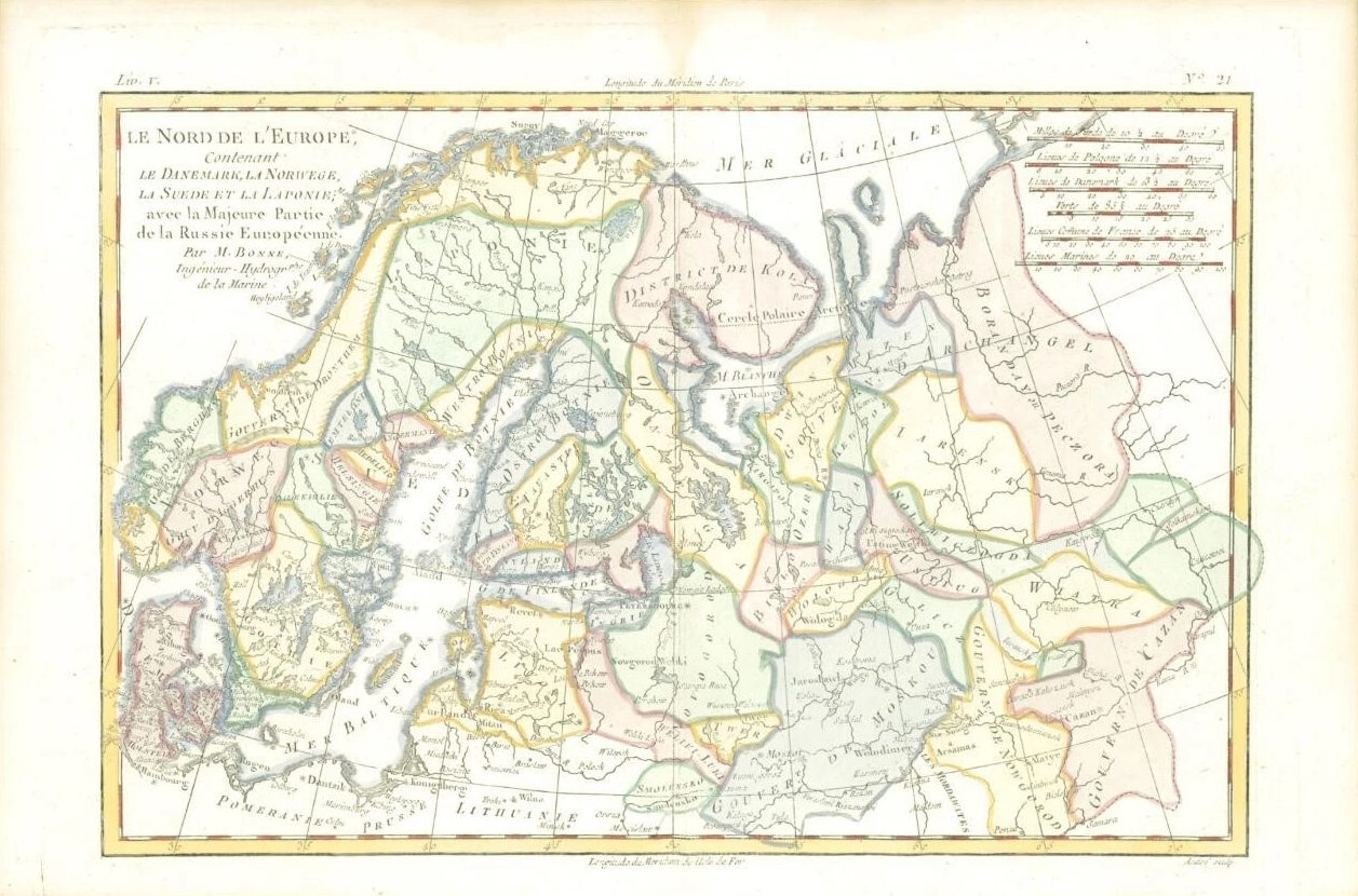 1780 - An original Antique Map by Rigobert Bonne & Guillaume Thomas Raynal titled: 'LE NORD DE L'EUROPE' - Including DENMARK, NORWAY, SWEDEN, LITHUANIA, RUSSIA, LAPLAND.