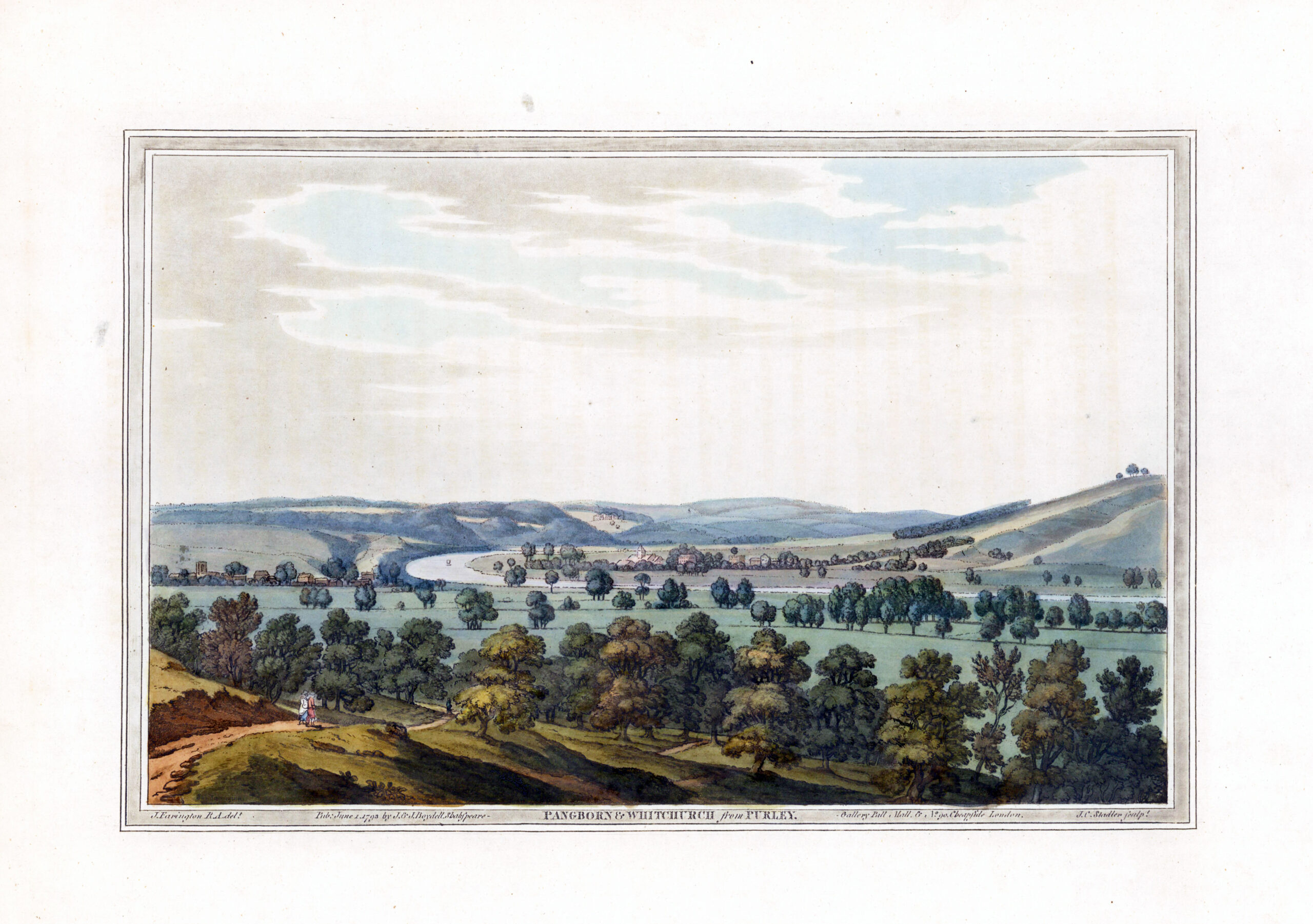 1793 "PANGBORN nr WHITCHURCH FROM PURLEY" Original hand-coloured aquatint after the drawing by J. Farington R.A, as published in 'An History of the Principle Rivers of Great Britain' by John and Joshia Boydell. Overall size approx 41cm x 30cm including margins.