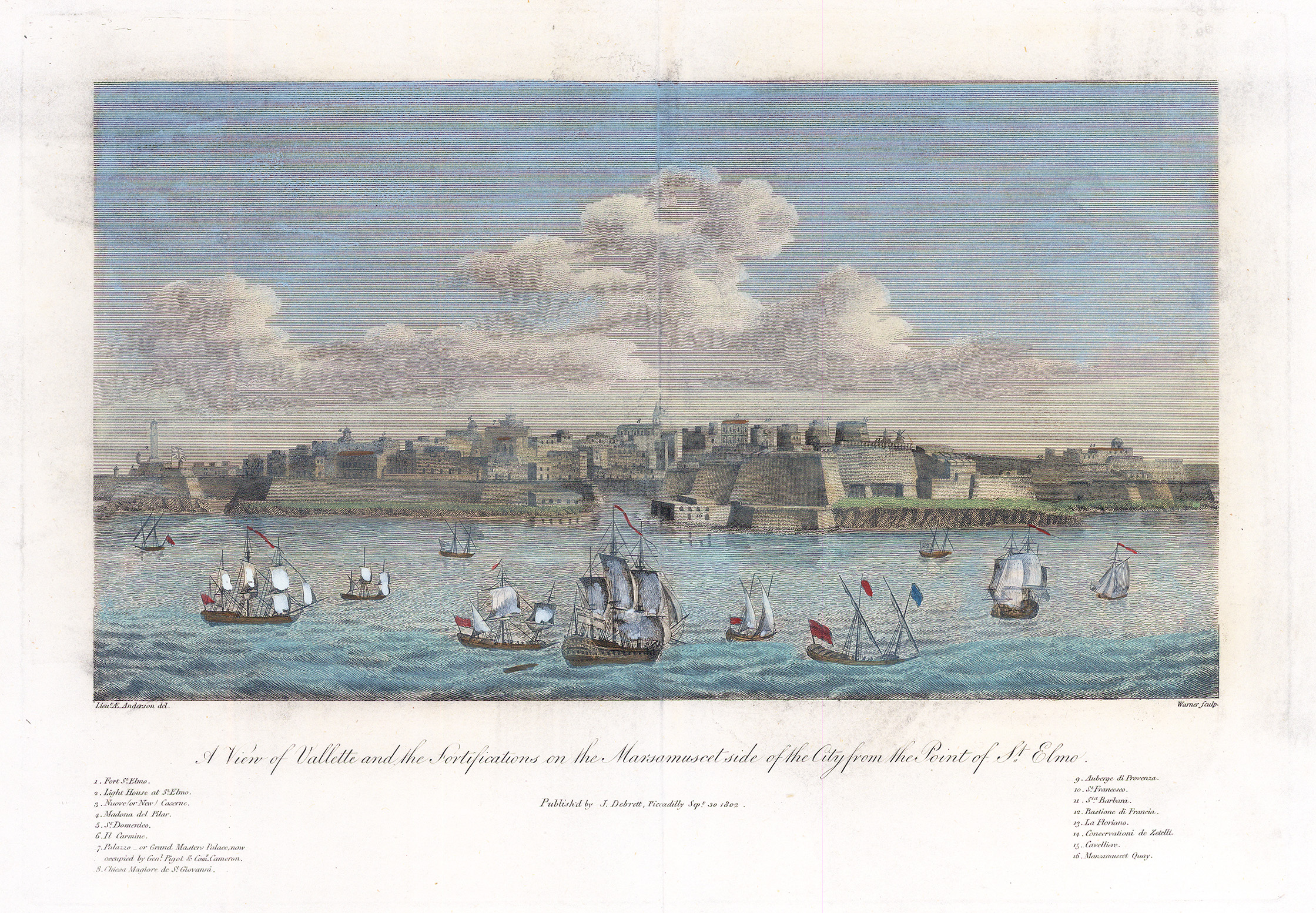 1802 "A VIEW OF VALLETTE AND THE FORTIFICATIONS ON THE MARSAMUSET SIDE OF THE CITY FROM THE POINT OF ST ELMO".