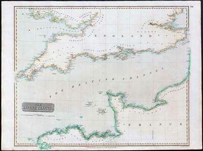 1814 - A large original engraved map titled: " The British Channel "