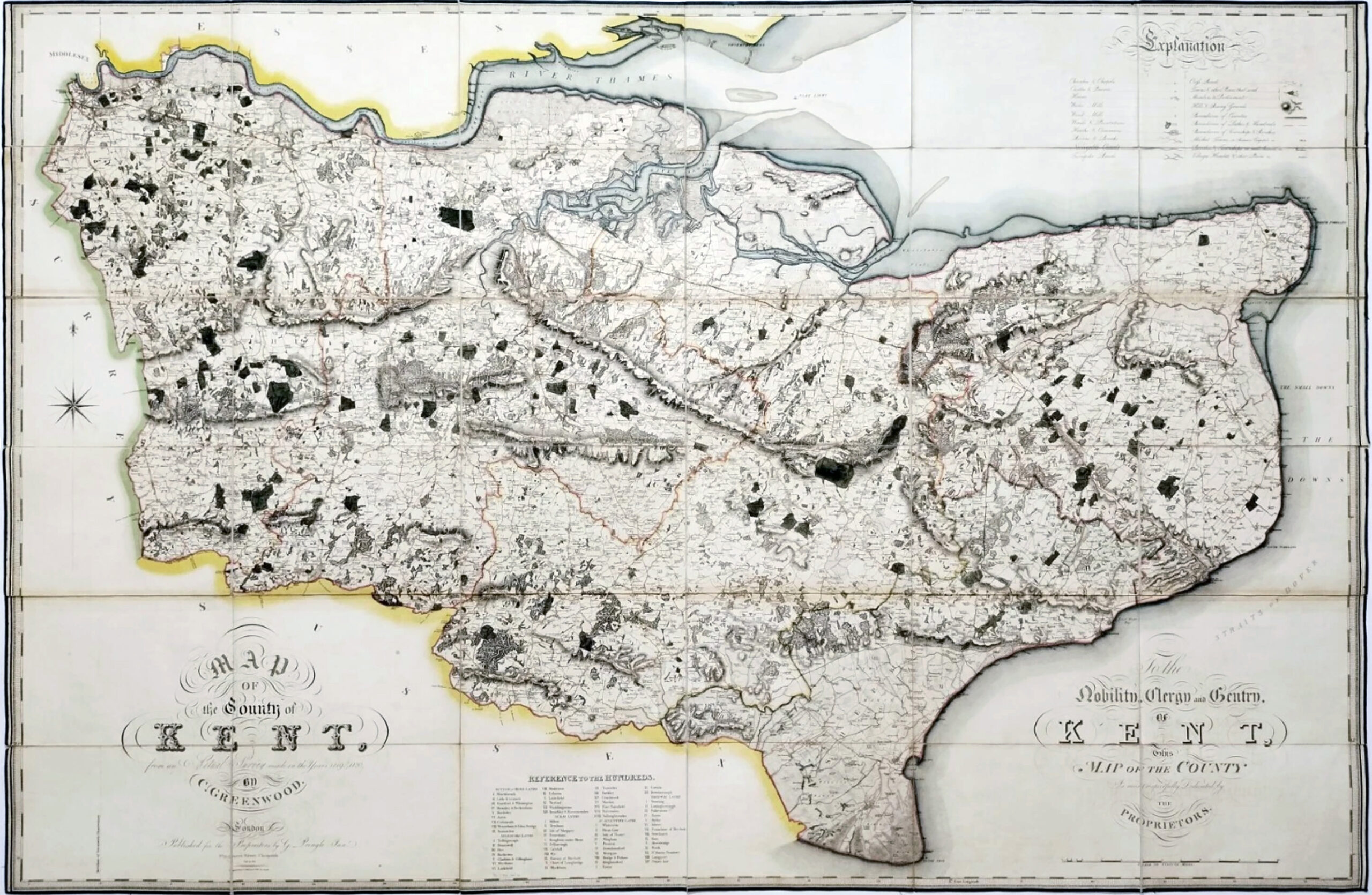 "Map of the County of Kent, from an actual Survey made in the Years 1819 & 1820. By C. Greenwood.To the Nobility, Clergy and Gentry, of Kent, This Map of the County Is most respectfully Dedicated by the Proprietors"