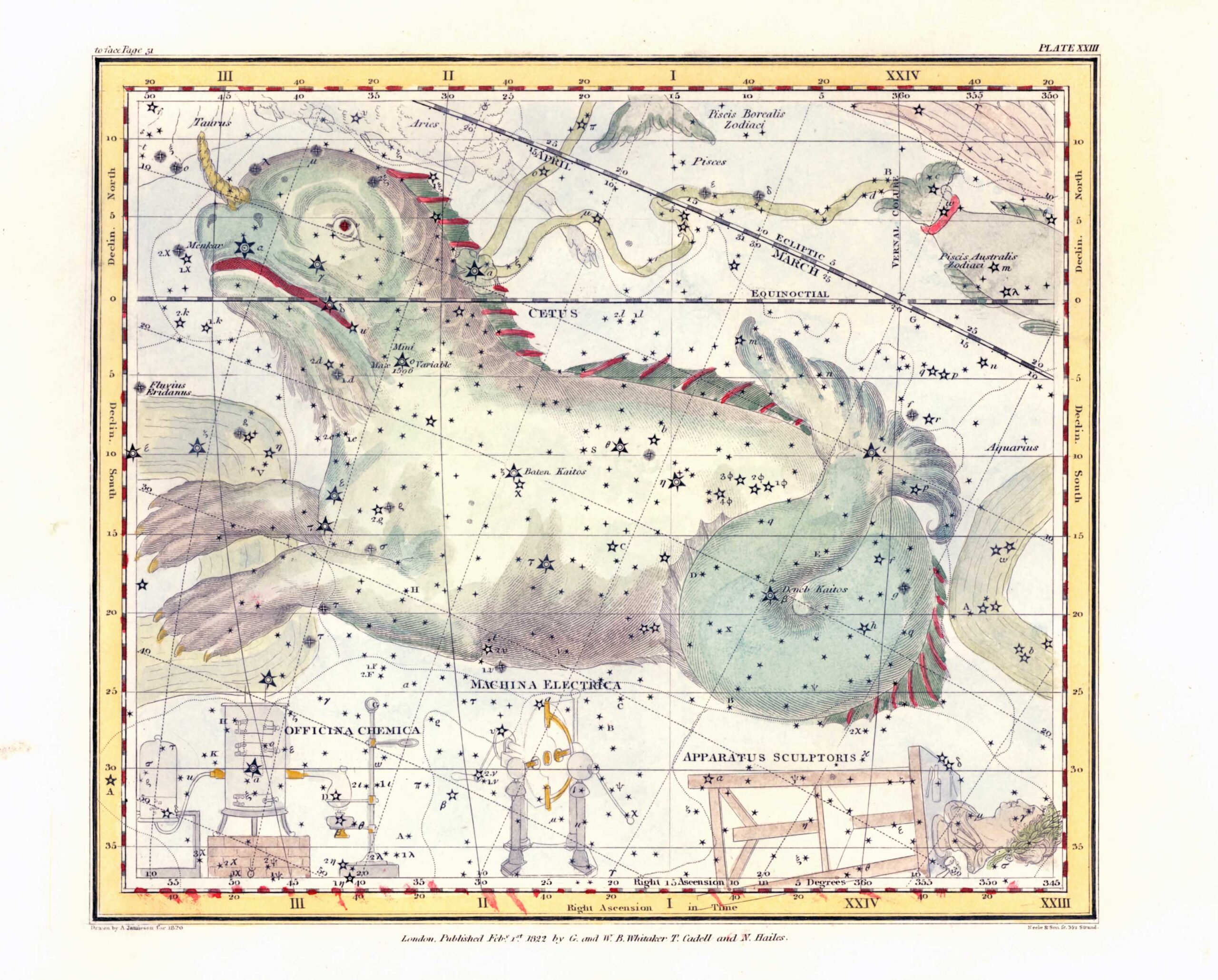 1822 Antique Engraving CELESTIAL CONSTELLATION CETUS MACHINA ELECTRICA (CA-17)