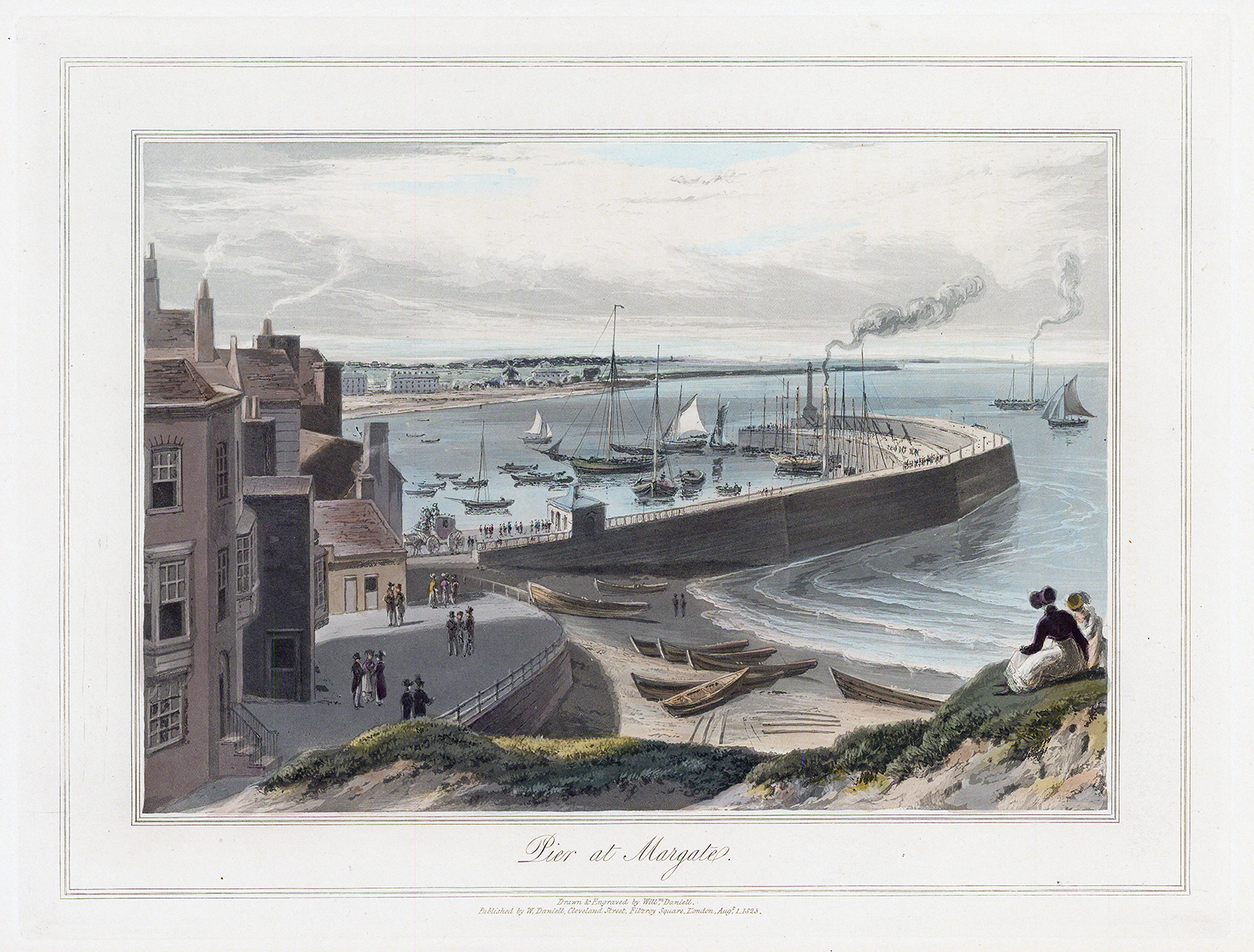 1823 "PIER AT MARGATE" An original antique aquatint published for "A VOYAGE ROUND GREAT BRITAIN" by William Daniell. Overall size approx 35cm x 24cm including margins.
