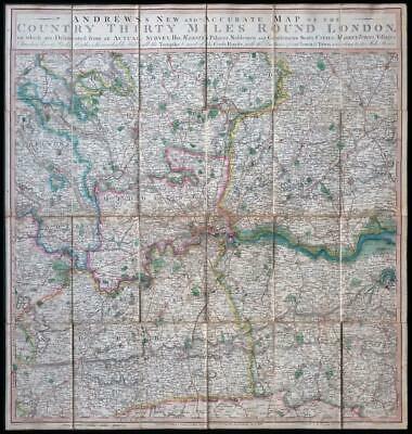 1826 - " ANDREW'S NEW and ACCURATE MAP of the COUNTRY THIRTY MILES ROUND LONDON, on which are Delineated from an Actual Survey, His Majesty's Palaces, Noblemen and Gentlemens Seats, Cities, Market Towns, Villages, Churches, Rivers, Parks Heaths & remarkable Hills, all the Turnpike & most of the Cross Roads, with the Distances from Town to Town according to the Mile Stones "