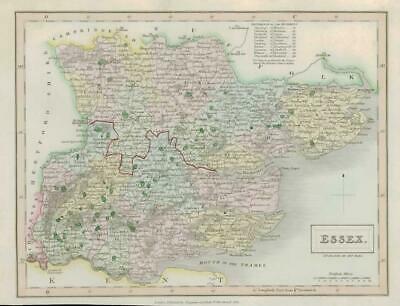 1833 Original Antique Colour Map of ESSEX by Chapman & Hall