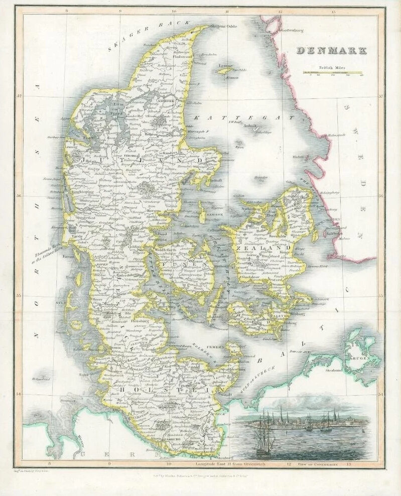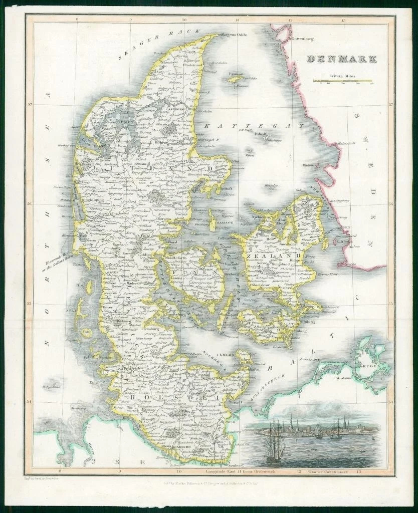 A fine example of this map with vignette of VIEW OF COPENHAGEN & with excellent hand colouring.