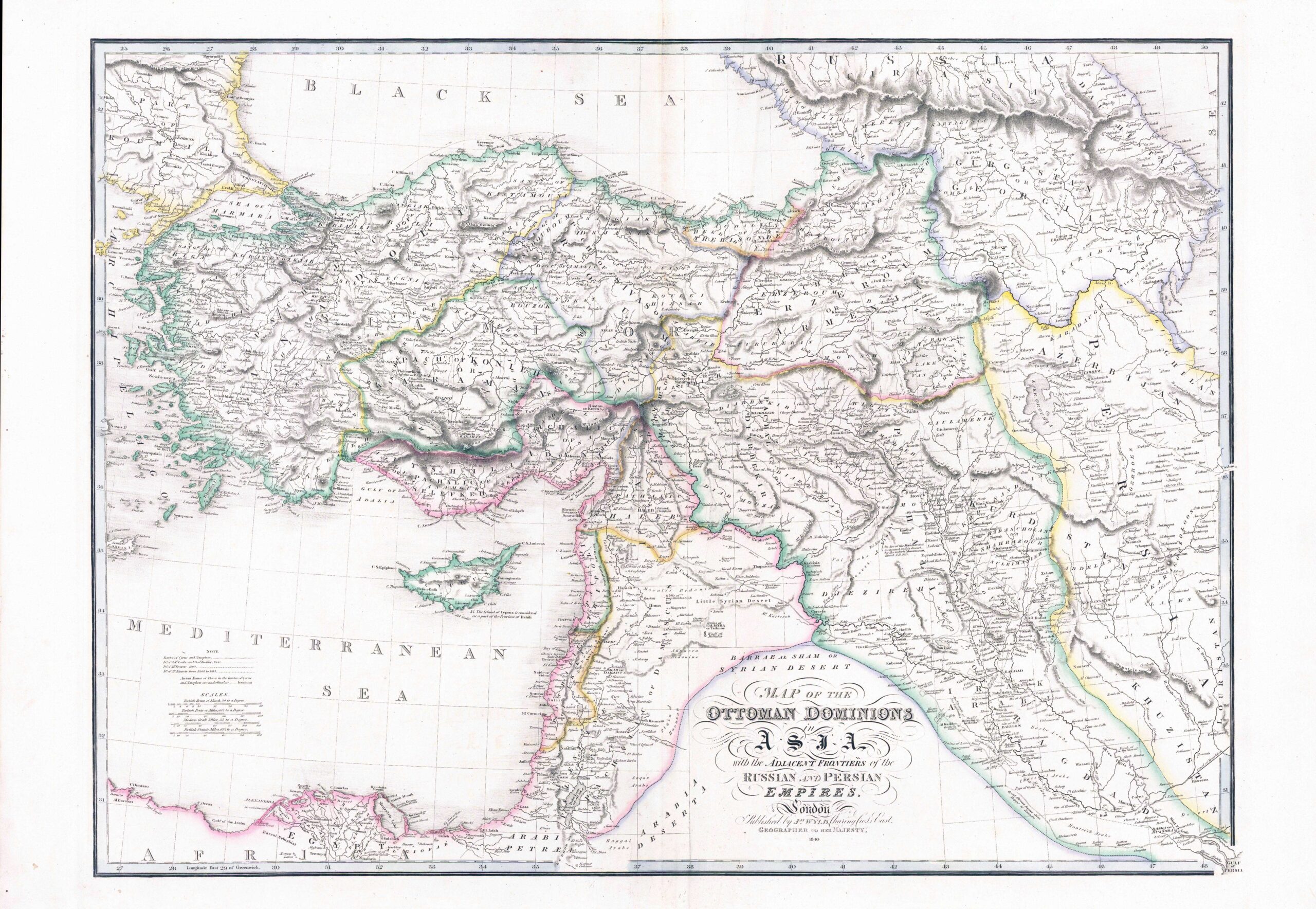 1839 - "MAP OF THE OTTOMAN DOMINIONS in ASIA with the ADJACENT FRONTIERS of the RUSSIAN and PERSIAN EMPIRES".