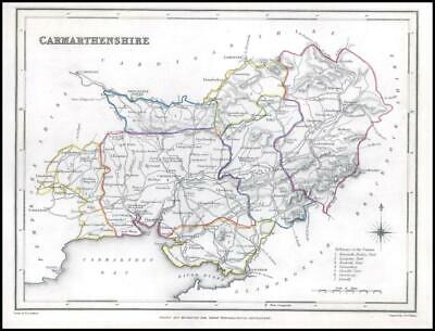 1840 - Original Antique engraved map titled: 'CARMARTHENSHIRE'