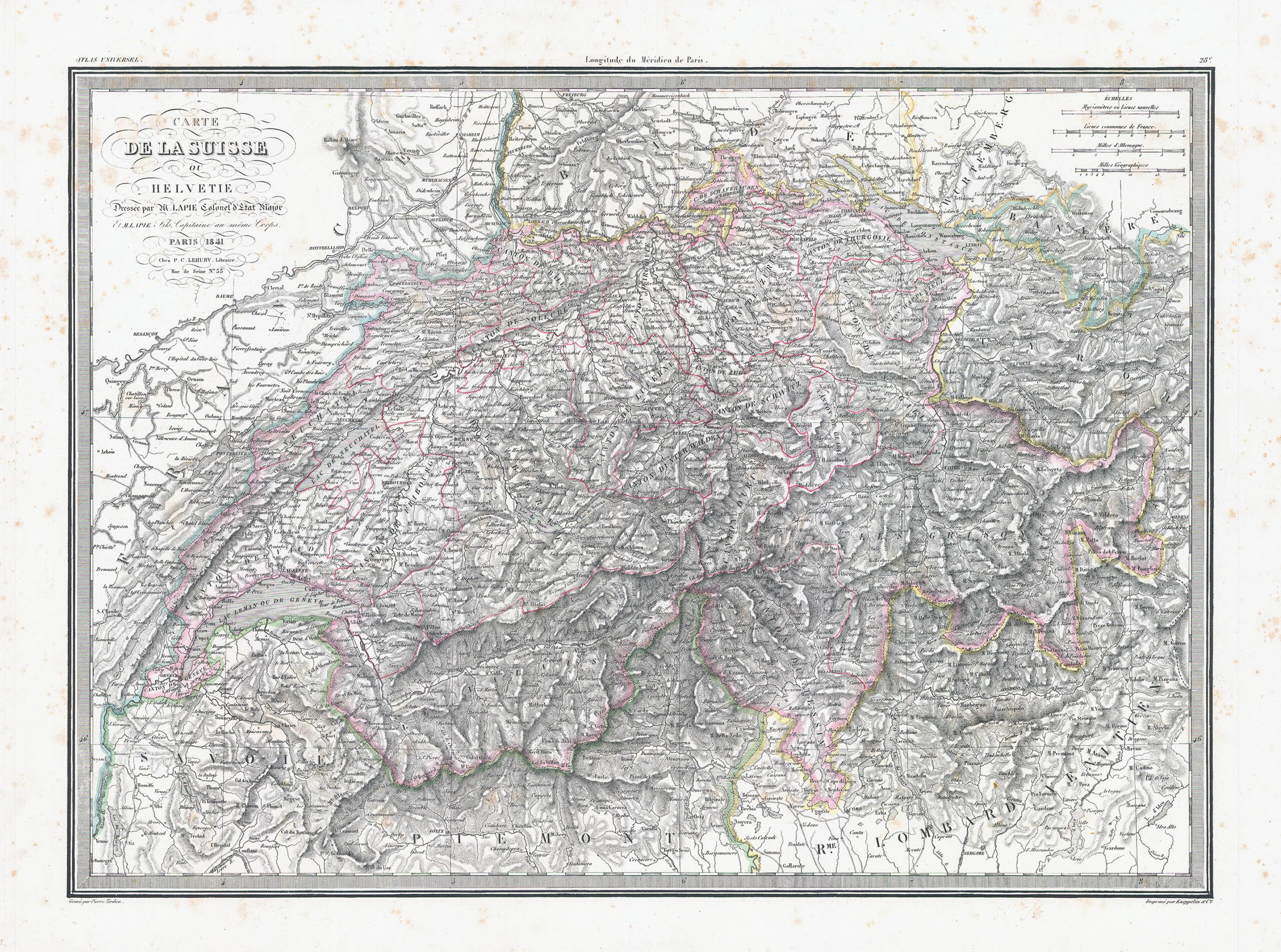 1841 - "CARTE DE LA SUISSE" - A fine original antique map of Switzerland b P M Lapie.