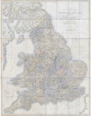 1842 - " CARY'S SIX SHEET MAP of ENGLAND and WALES with part of SCOTLAND on which are carefully laid down. All the Direct and Principal Cross Roads, the Course of the Rivers and NAVIGABLE CANALS, Cities, Market and Borough-Towns with the principal Villages Parks & c COMPILED FROM THE MOST RECENT SURVEYS 1842 - London Published by J CARY No 86 St James;s Str "