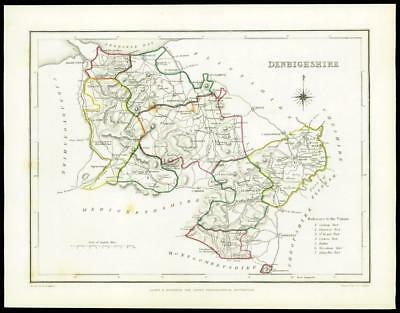 1845 Antique colour map of "DENBIGHSHIRE" Wales by LEWIS (W/DW51)
