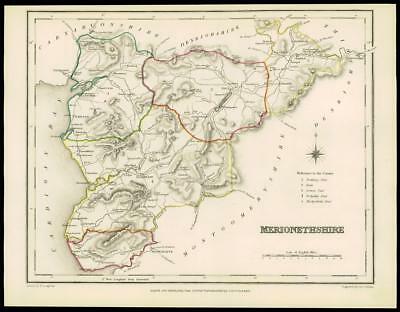 1845 Antique colour map of "MERIONETHSHIRE" Wales by LEWIS W/DW33