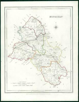 1845 IRELAND - Original Antique Map of MONAGHAN by Lewis with outline colour