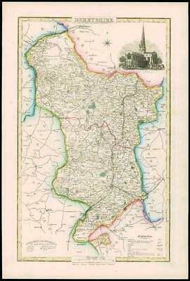 A good detailed engraved Map of the County with an uncoloured view of ASHBORN CHURCH. Explanation, scale and List of the Hundreds. Original outline hand colouring.