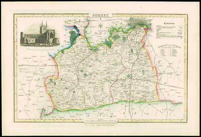 1846 - Original Antique Map of SURREY by Slater ST SAVIOURS CHURCH SOUTHWARK