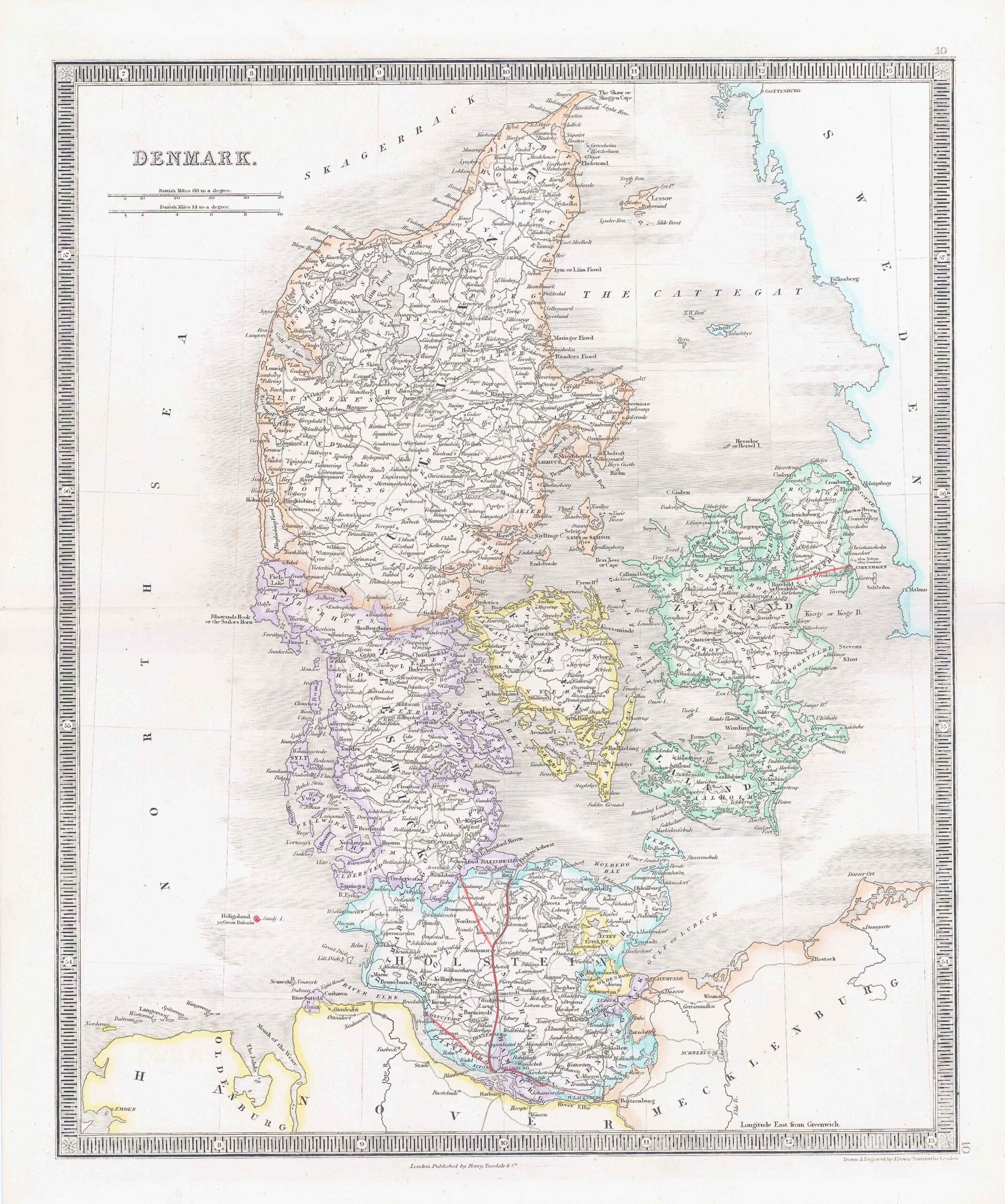 1850 - Original antique map titled "DENMARK" published by Henry Teesdale.