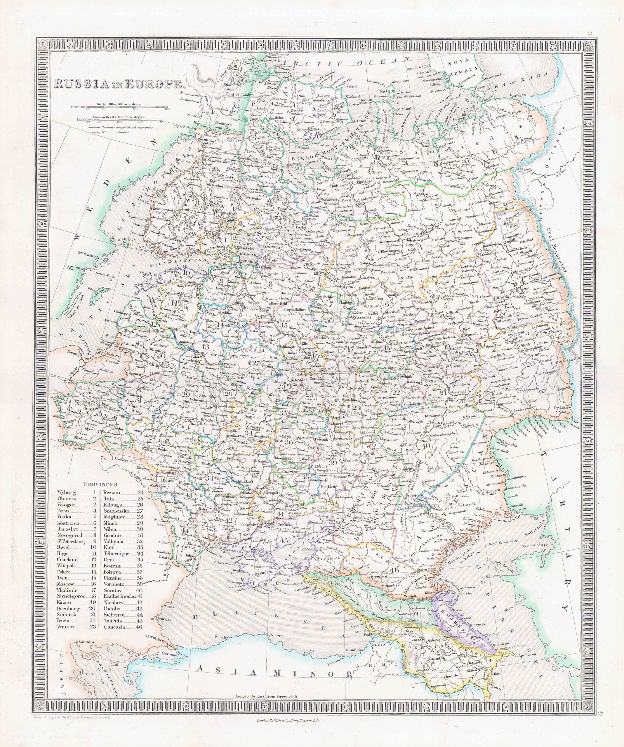 1850 - Original antique map titled: "RUSSIA IN EUROPE" published by Henry Teesdale.