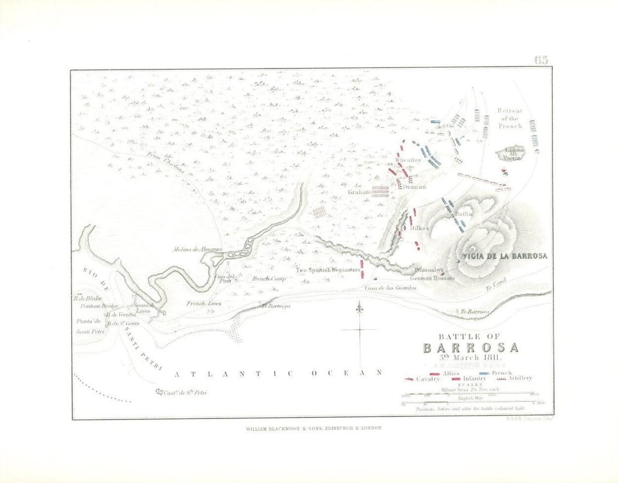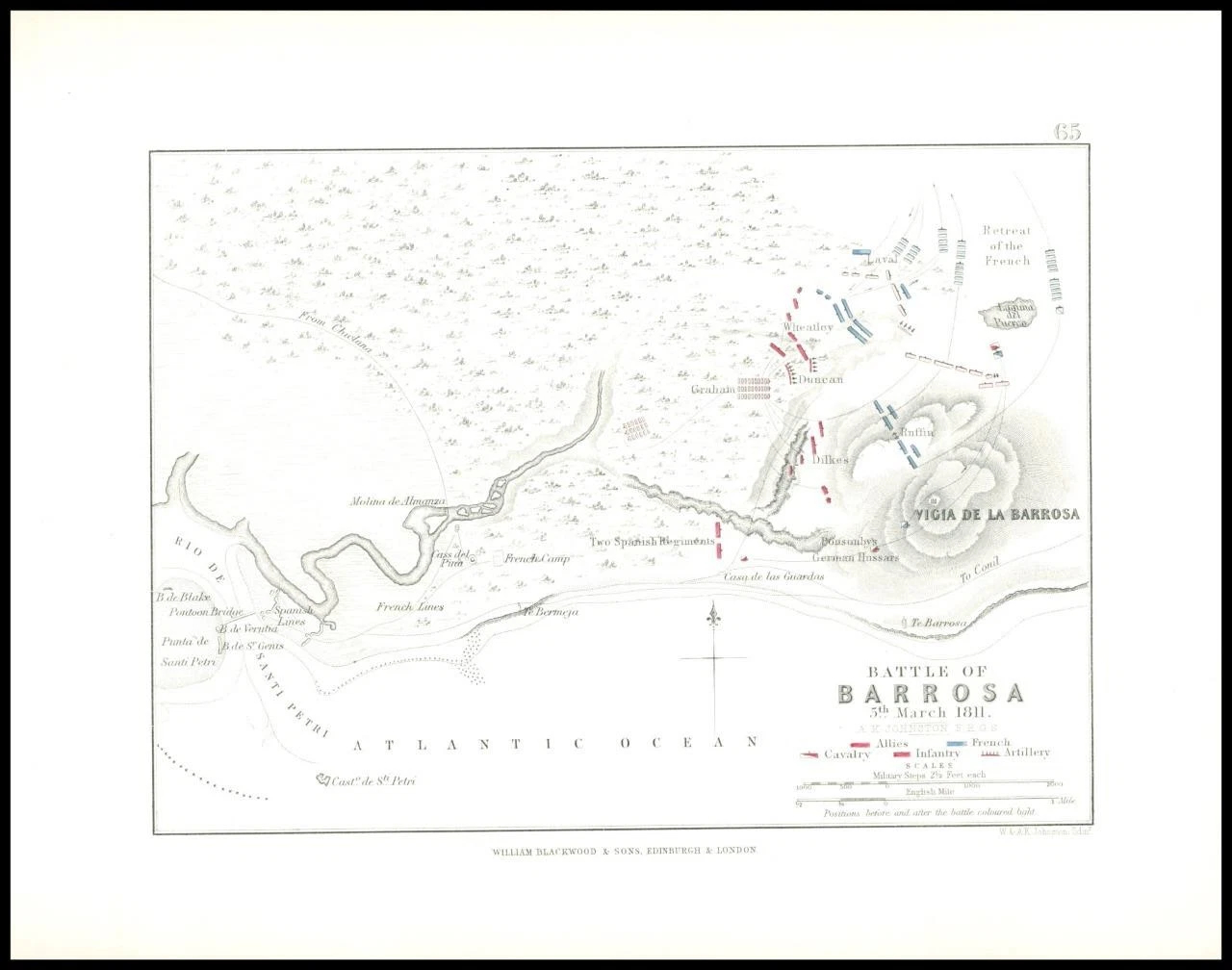 1852 - Original Antique Map titled: " BATTLE OF BARROSA 5th March 1811. "