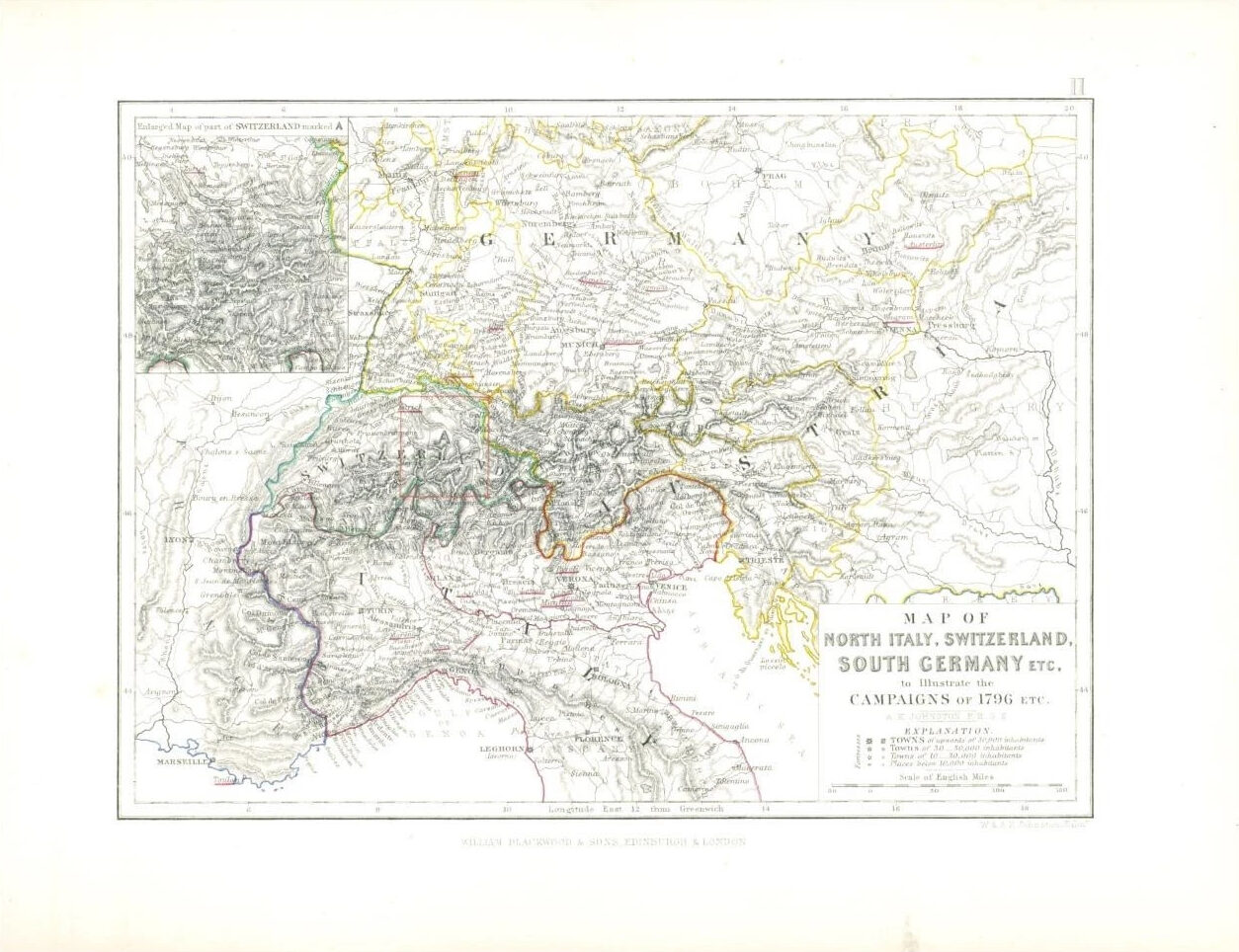 Provenance: Taken from 'ALISON'S HISTORY OF EUROPE Constructed and Arranged, under the Direction of Sir Archibald Alison, by Alex. Keith Johnston, F.R.S.E. F.R.G.S. F.G.S Geographer at Edinburgh..' by W. Hughes & John Bartholomew and published by A & C Black, Edinburgh.