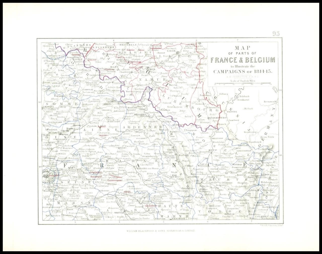 1852 - Original Antique Map titled: " MAP OF PARTS OF FRANCE & BELGIUM to Illustrate the CAMPAIGNS OF 1814-15. "
