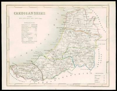 1855 - An original antique colour map by Joshua Archer titled: "CARDIGANSHIRE"