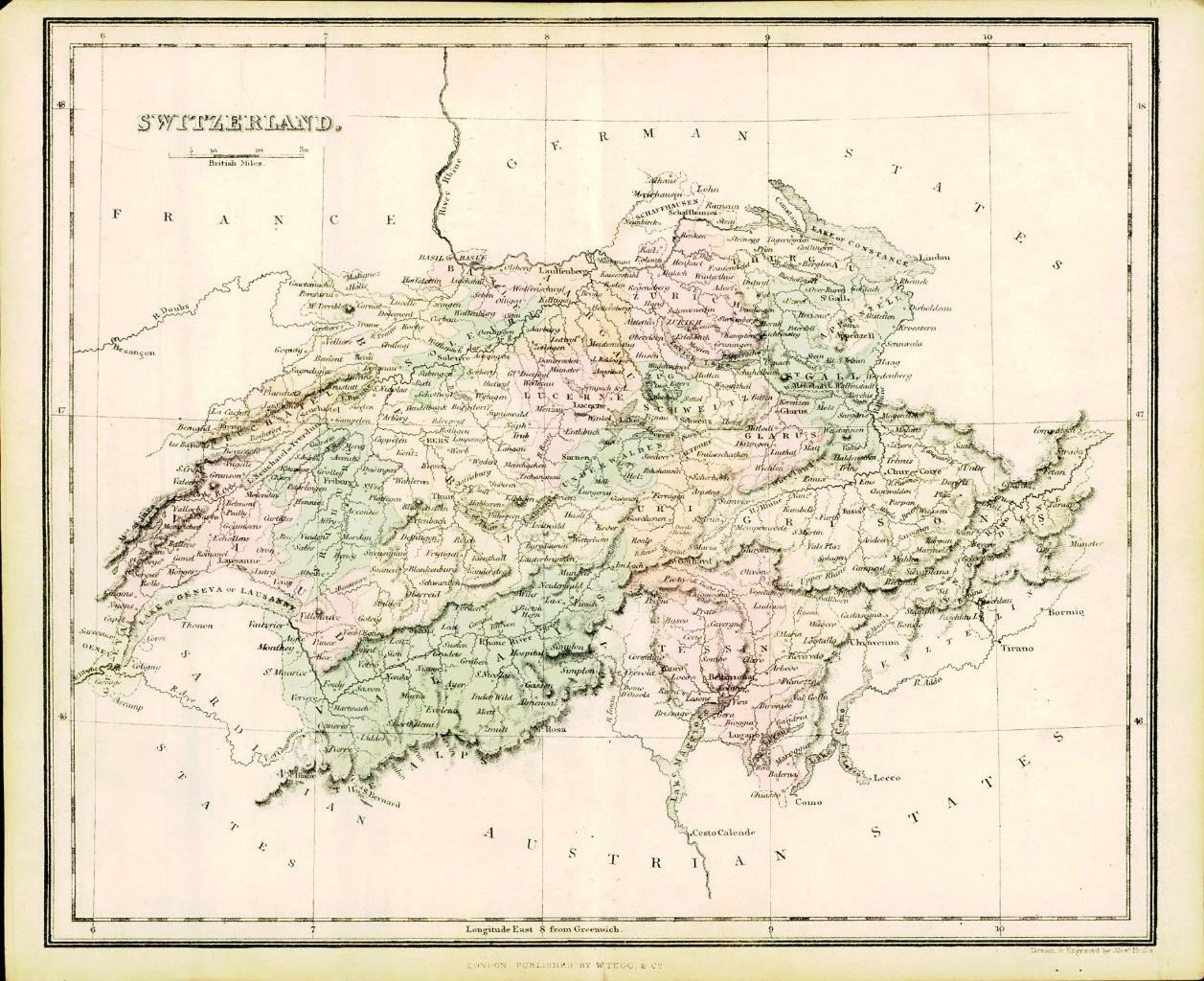 1858 Engraved Colour Map of SWITZERLAND FOR THE USE OF SCRIPTURE STUDENTS (MA15)