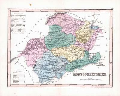 1860 - An original antique colour map by Joshua Archer titled: "MONTGOMERYSHIRE"