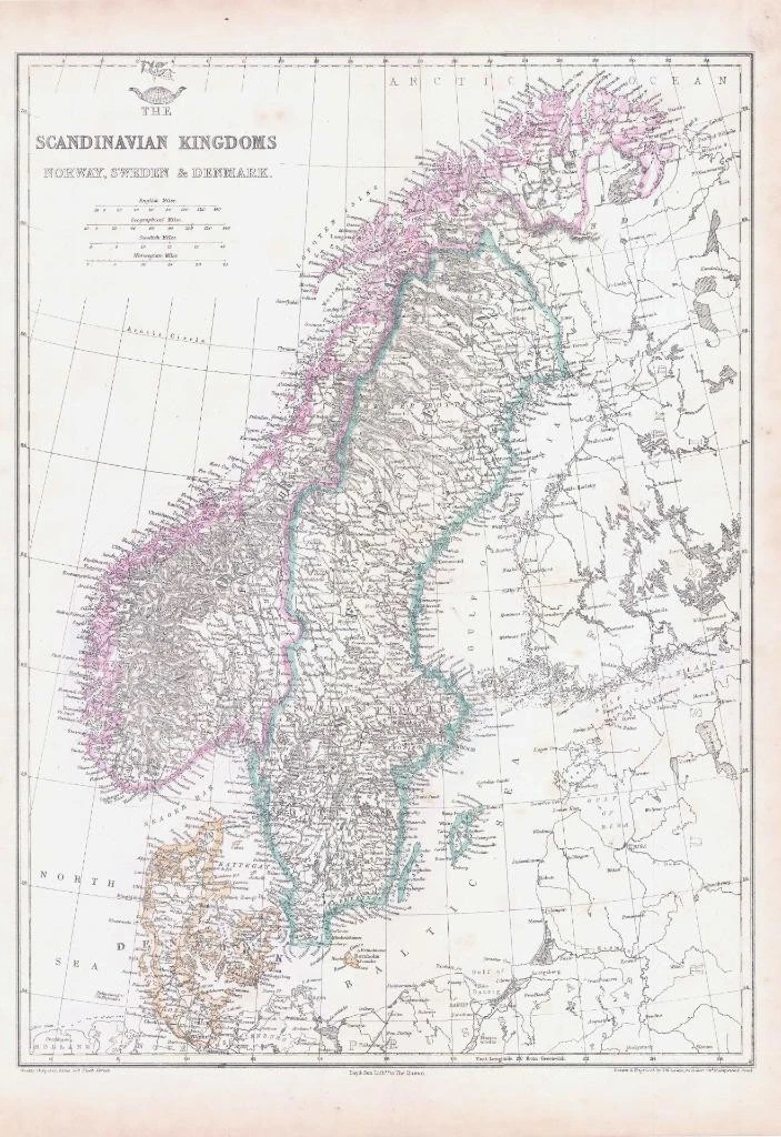 1863 - A fine large original antique map titled: "THE SCANDINAVIAN KINGDOMS