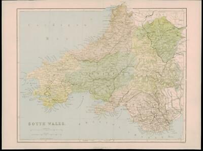 1865 - An original antique map titled:" SOUTH WALES "