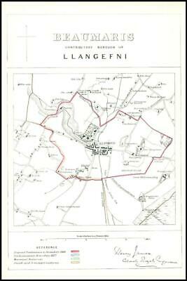 1868 - An original antique lithograph map taken from 'Boundary Commission Report for England and Wales' titled: "BEAUMARIS, Contributory Borough of Llangefni"