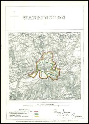 1868 - An original antique lithograph map taken from 'Boundary Commission Report for England and Wales' titled: "WARRINGTON"