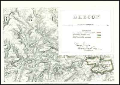 1868 - An original antique lithograph map taken from 'Boundary Commission Report for England and Wales' titled: "BRECON"