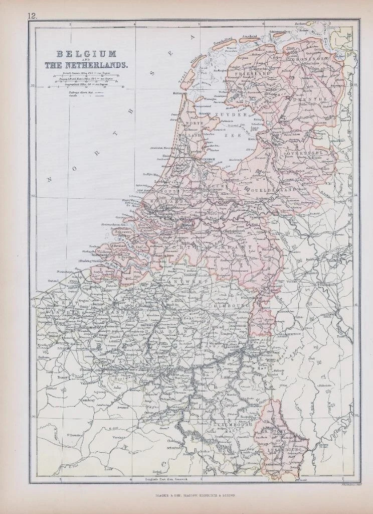 1882 Antique Colour Map of BELGIUM AND THE NETHERLANDS by BLACKIE (BA57)