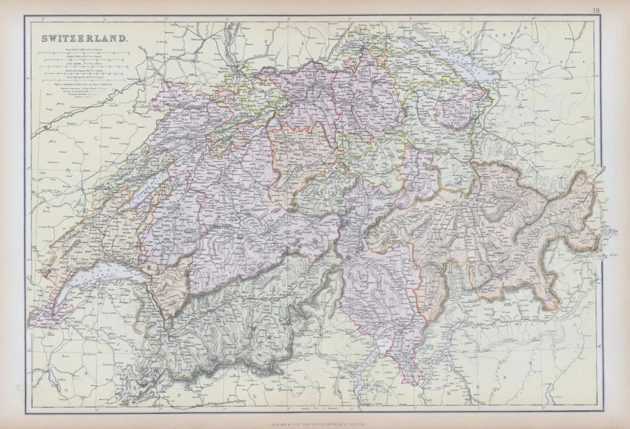 1882 - Very large original Antique Map titled: "SWITZERLAND"