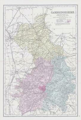 1883 - Large original colour Antique Map titled:" CAMBRIDGESHIRE "