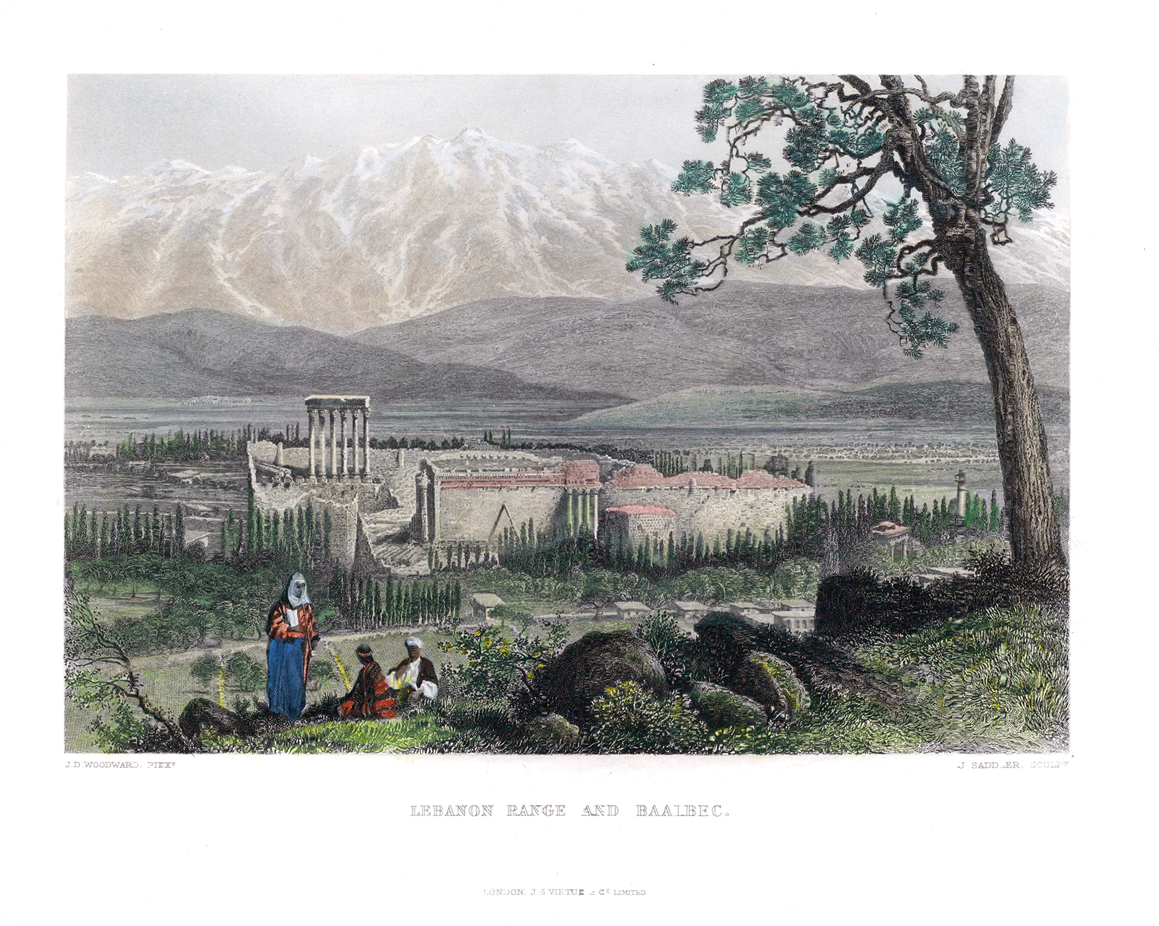 1886 "LEBANON RANGE AND BAALBEC" (Baalbek, Syria) - A fine original antique engraved print by Col Charles Wilson. Size approx 30cm x 22.5cm. Condition is excellent