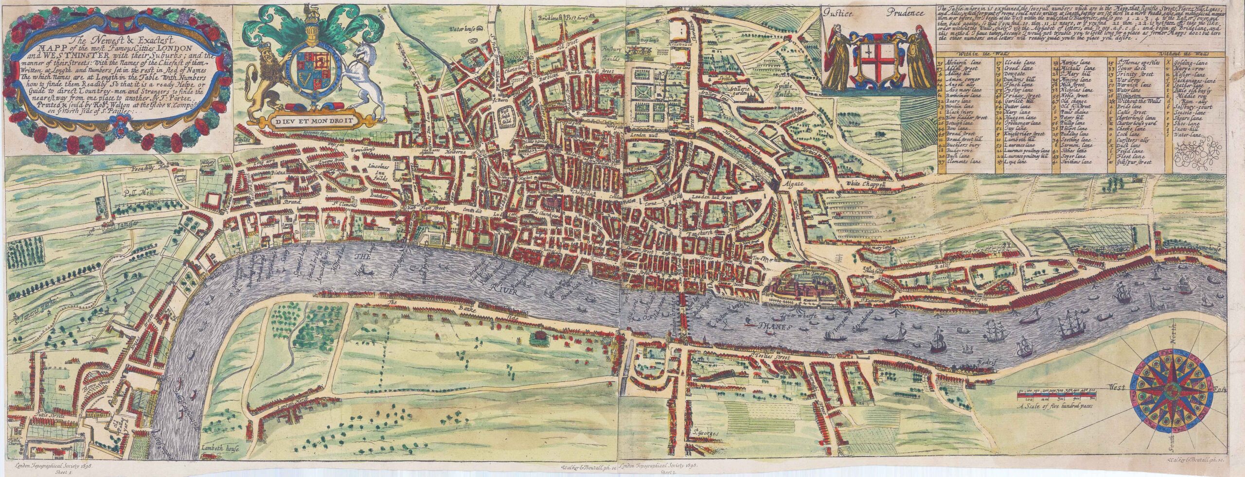 1898 - "THE NEWEST & EXACTEST MAPP OF THE MOST FAMOUS CITTIES LONDON AND WESTMINSTER WITH THEIR SUBURBS......." An example of the famous Thomas Porter map, originally published in 1652 and this one published by the London Topographical Society in 1898. Two conjoined sheets with later hand colour.