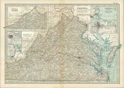 1903 - An original Antique colour Map titled: 'VIRGINIA, Norfolk and Vicinity'