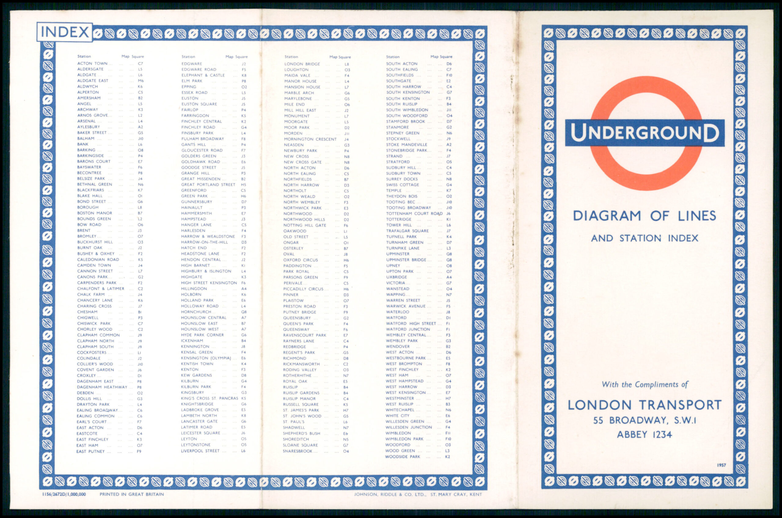 1957 A fine original vintage LONDON TRANSPORT RAILWAYS DIAGRAM OF LINES Underground map with the design by Harry Beck.